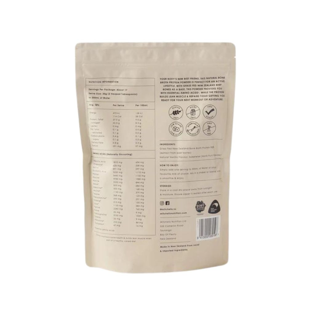WHAT’S THE DEAL WITH BONE BROTH PROTEIN POWDER? Bone Broth Protein Powder is a natural way to give your body all the support it needs to stay active. Every single gram of protein and collagen found in this powder is a natural outcome of the slow cooking process. We use the traditional cooking technique to extract the goodness from 100% grass fed New Zealand beef bone, before stirring in some cocoa, natural vanilla, cocoa powder, and monk fruit for flavour. Nothing else.