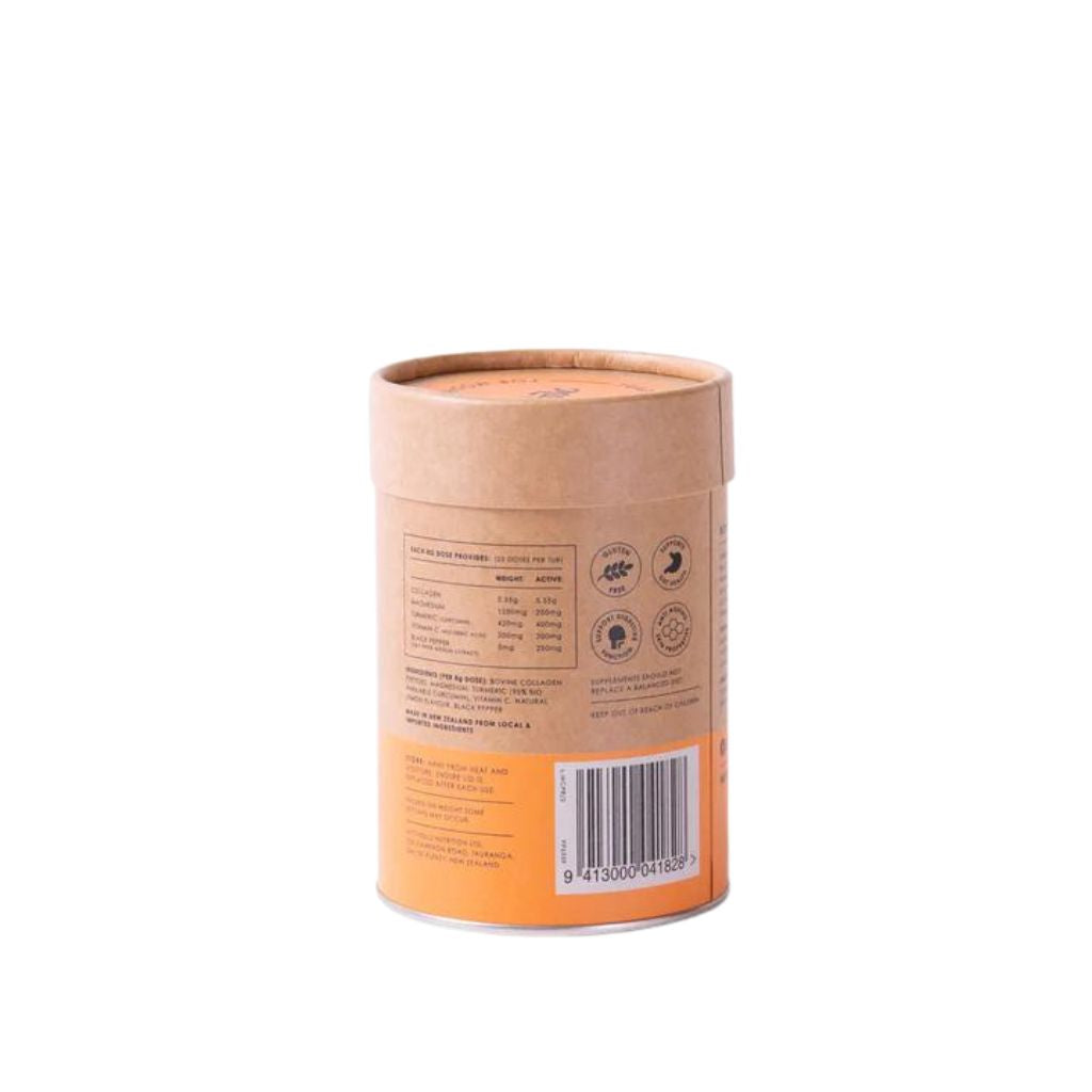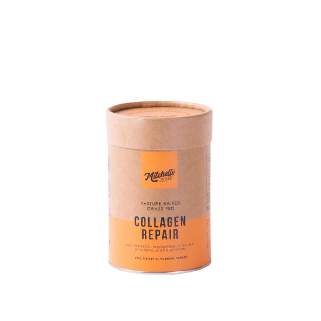 Collagen Repair contains collagen peptides, curcumin from turmeric, magnesium, vitamin C, Black pepper and a touch of natural lemon flavour. All natural, all good for you.