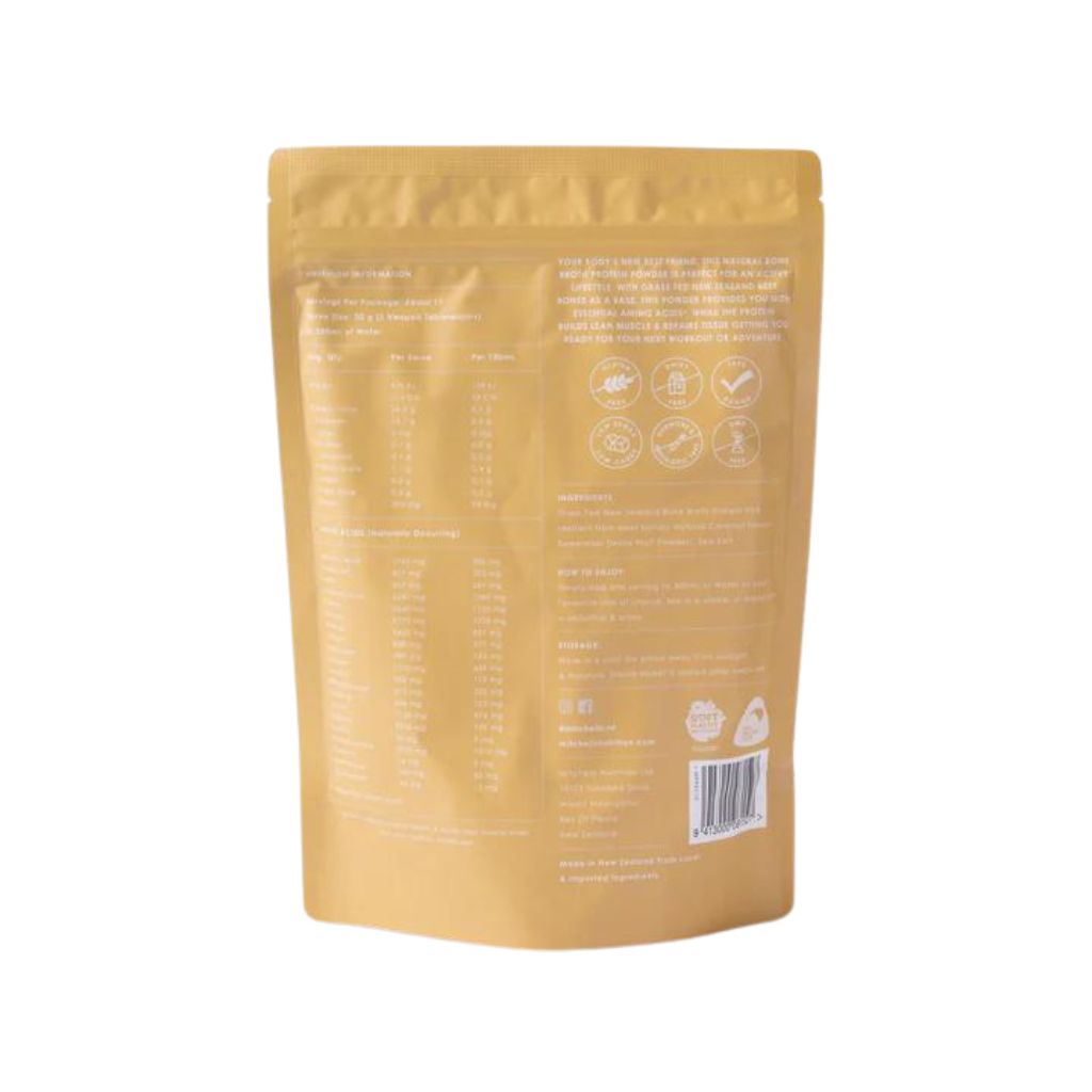 WHAT’S THE DEAL WITH BONE BROTH PROTEIN POWDER? Bone Broth Protein Powder is a natural way to give your body all the support it needs to stay active. Every single gram of protein and collagen found in this powder is a natural outcome of the slow cooking process. We use the traditional cooking technique to extract the goodness from 100% grass fed New Zealand beef bone, before stirring in some cocoa, natural vanilla, cocoa powder, and monk fruit for flavour. Nothing else.