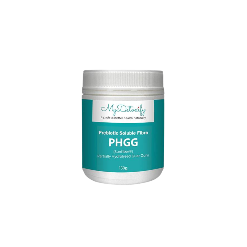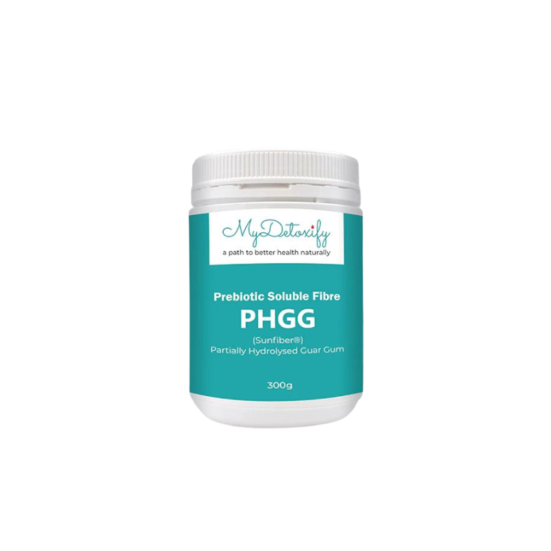 The PHGG is naturally enzymatically hydrolysed to break the viscosity of the Guar Gum into smaller soluble units that dissolve more easily in water. PHGG is a colourless and odourless dietary fibre which contributes to regular laxation (bowel movements) and a valuable prebiotic to support microflora balance, digestive health, intestinal comfort. When consumed in water at meal times it may assist the body to reduce post meal blood sugar spikes by decreasing the glycemic index of foods.